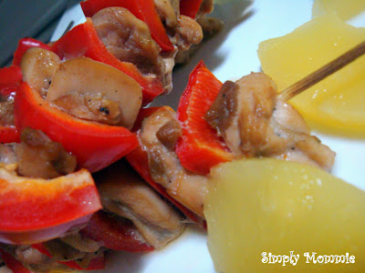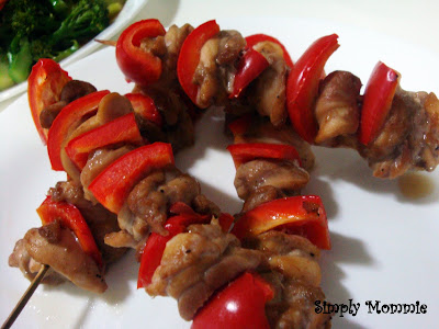 - Skewer the chicken and capsicum pieces, using satay sticks, alternating the two.