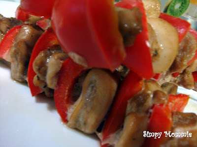 - Place skewers on baking tray and bake at 220degC for 10min.