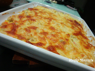 - Place the dish into the oven and bake at 180degC for 20-30min (or when the cheese browns beautifully). [Note that oven temperatures may vary and I've had to increase the temperature in my new oven to 200degC.]