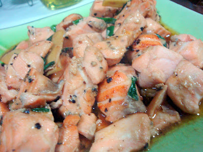 - 1 slab of salmon (not sure how much it weighed) – cut into cubes