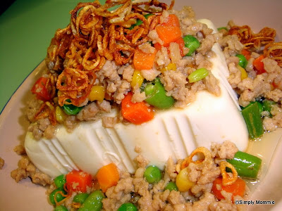 Alicia still doesn’t like tofu, but she loved the rest of the dish and she ate quite a bit of rice mixed with minced pork, the shallot oil, some of the mixed veggies and chopped french beans from the other dish. π I think she just likes the shallot oil! lol.