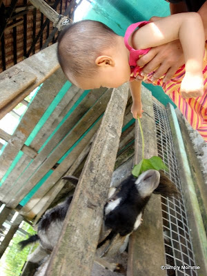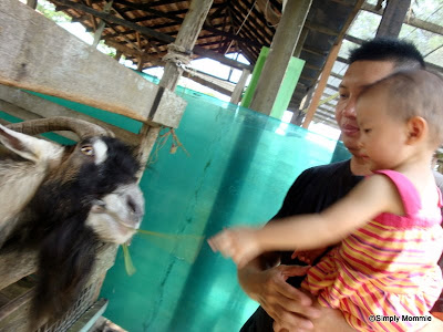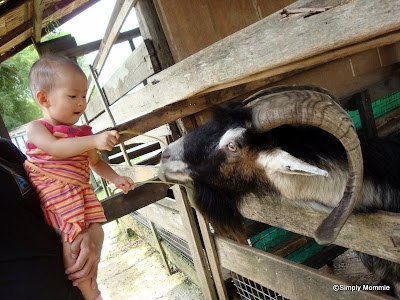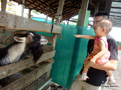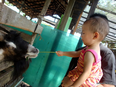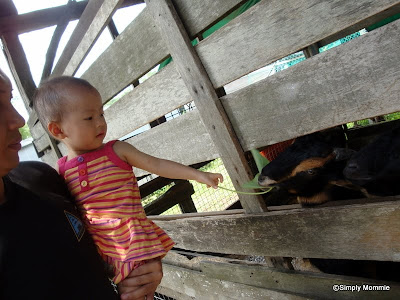We took Alicia to Farmart today, thinking that it’d be good to expose her to a farm-like environment. However, the place was quite a letdown since it was really rundown and there was only a very small animal section with very, very few animals (there were only turtles, bullfrogs, some rabbits in shabby-looking cages and three mountain goats)…