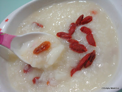 I chose to add 1T wolfberries only when serving so that the child will get to enjoy a different texture of wolfberries in the porridge. If you’re worried that your child cannot handle the wolfberries then cook them together with the porridge.