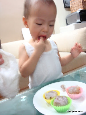 I decided to bake mini cottage pies for Alicia the other day, but using minced chicken in place of minced beef since I didn’t have beef on hand. And just in case you’re wondering, the potato I used was a purple one hence the violet hue instead of the usual yellow. π Hubby actually thought it was yam… lol.