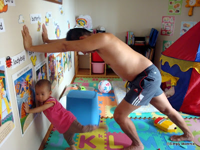 Remember the short video clip I posted about Alicia trying to imitate my hubby doing stretching exercises? Here a few photos I captured on Saturday of her trying to copy hubby again! 😛