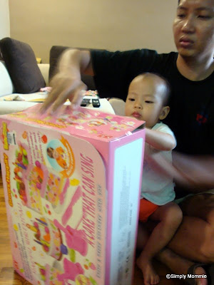 Alicia loves the toy sooo much she was still playing with it before she slept last night… carrying it with her everywhere she went. I know where she’s going just by listening to the sound of the singing birthday cake… lol.