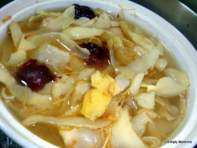 I happened to chance upon this recipe from a cookbook my mil bought and it says the soup helps to rid pimples so I thought oh well, might as well give it a try. What have I got to lose? Hehe. Anyway, the ingredients are rather similar to my ginseng root chicken soup just that the emphasis found in this soup is the Solomon’s seal.