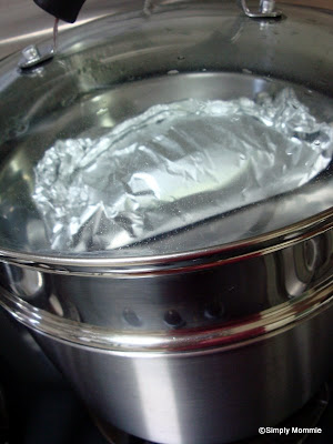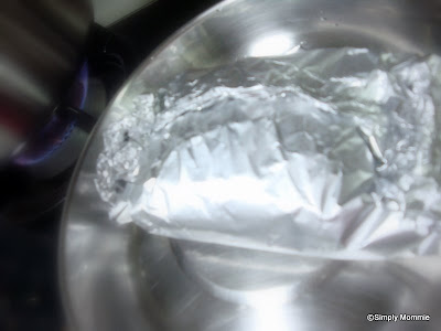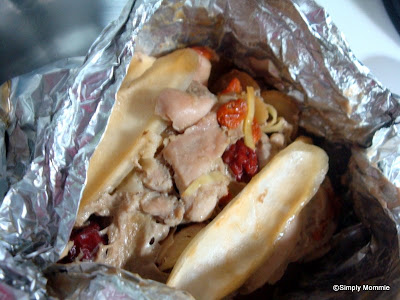 - Place the chicken meat and all the ingredients on a piece of aluminium foil. Seal the ingredients and place the packet on a plate.