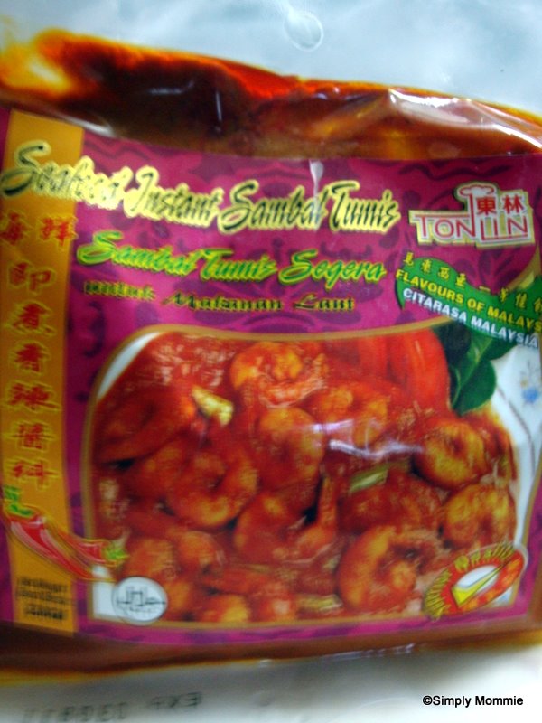 This sambal tunis is meant for cooking seafood and since it’s instant paste, it appealed to me, well, instantly. π I used to like to make my own sambal and all and I have been seriously considering making my own sambal tunis ever since I saw it on Ju’s siteΒ (great food, great photography. Hop over if you’ve not seen her foodblog). I really mean to make it some day but I’ve been really bogged down with lots of stuff and so I didn’t need any other encouragement to buy this instant paste. After all, I had half a kg of prawns at home that day and I intended to cook them for dinner so why not try something new?