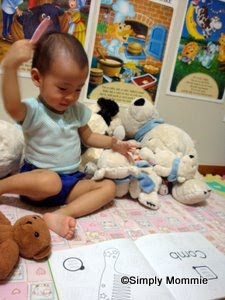 This is really quite a good buy as it’s only about $2 from Popular bookstore (was on special offer) and it has stickers of pictures and words which the child is supposed to stick on the right pages.