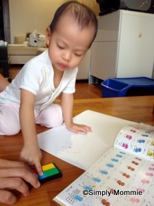Well, we were rather disappointed when we tried to use the inkpad as well, an inkpad. Only Alicia seemed to be able to get some ink on her fingers! After trying out for awhile, we realised that the trick was not to press the finger on the pad but to swipe the finger across it. lol.