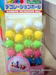 I’ve been wanting so much to buy the pompoms each time I visit Daiso, and I have to keep reminding myself that my baby is just too small now to be playing with them (she’ll just stuff all of them into her mouth) and it doesn’t make sense to keep all these things cluttered up somewhere only to be forgotten later… but I kept remembering I’ll buy them! Because I found so many activities that I can do with them =) here’s something to share, although you’d have probably know about them already, looking at the array of activities you’ve been engaging your little one with! π http://sewfantastic.blogspot.ca/2012/05/rainy-day-fun.html