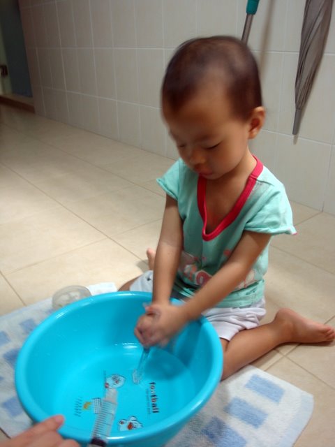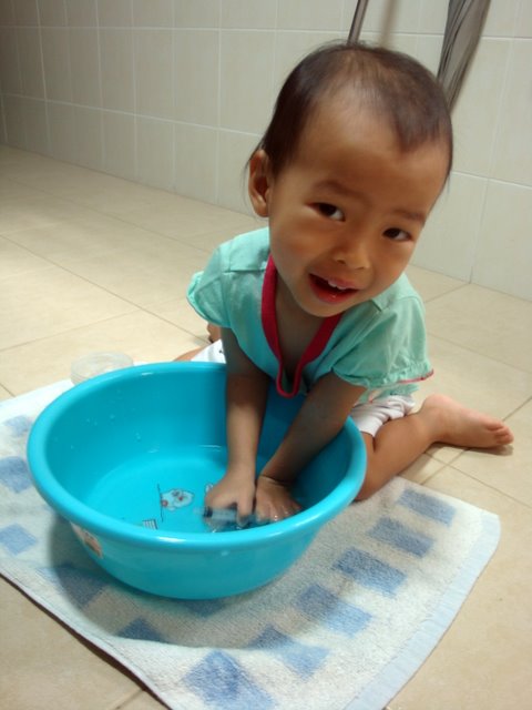 Learning to use a syringe can be really interesting for a tot – learning the mechanics of getting the water into the syringe and of course, their favourite part would be to ‘shoot’ the water out from it!