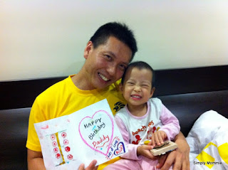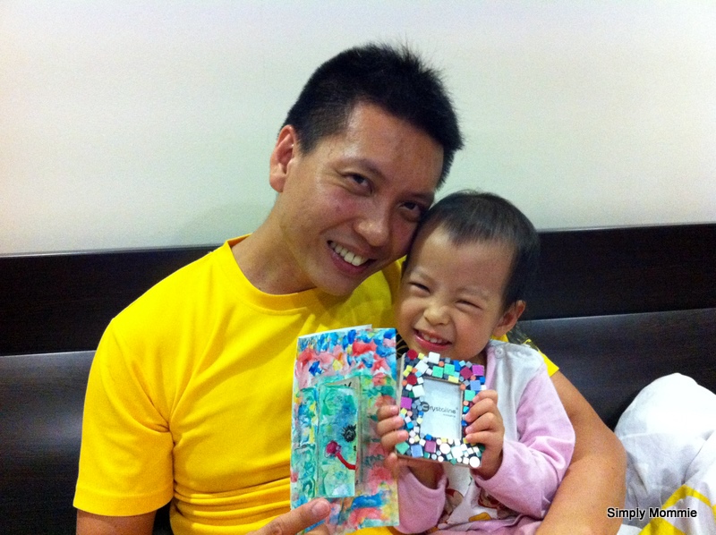 Happily presenting her gift and card (she made with my mum) to daddy: