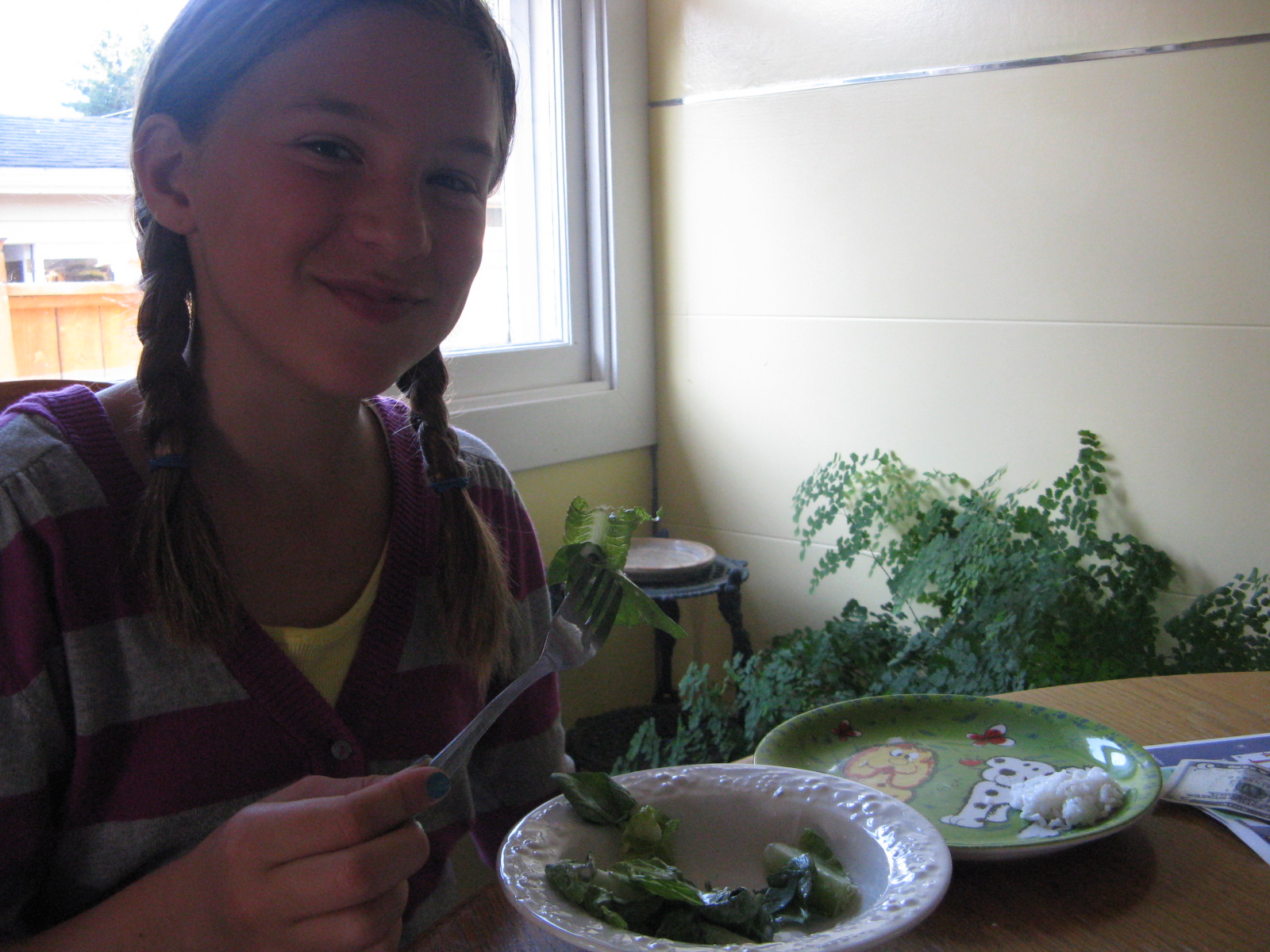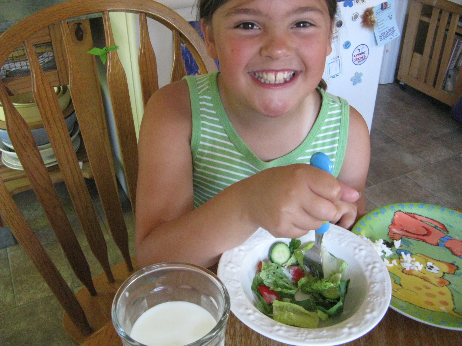 So I don’t hear about how they’re going to starve to death, I make sure that they like at least one thing on their plate. But not enough to fill up on—this is important, or they won’t have room for all that other stuff! Then, they must try at least one bite of everything else. They control how much they eat—no threats about finishing what’s on your plate. But also, no dessert unless they have.