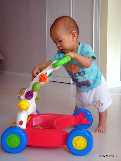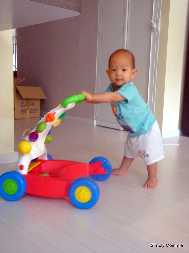 And I can play with the stuff on the walker too – while standing and holding on to the walker!