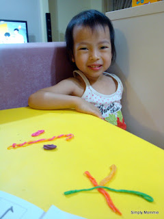 Honestly, it arrived on a day that I needed something to jazz up handwriting practice (homework from school). She was trying to distract me from making her finish up her work and then I suddenly thought, why not use the Wikkistix to make tedious and boring homework more fun? I’d planned to introduce the stix to her after she was done with her work but heck, I found a better plan!