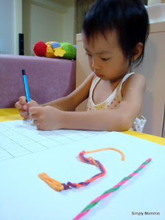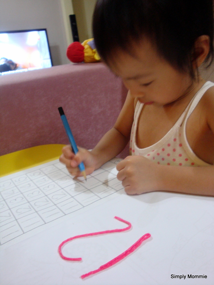 I showed her the stix and twisted them to make the number that she was supposed to practise writing. Suddenly, there was so much fervour to get the writing done!