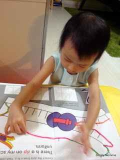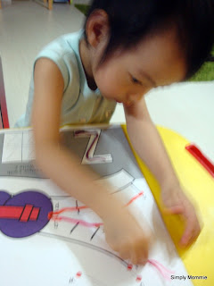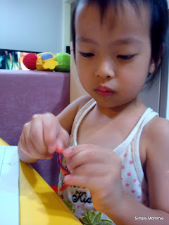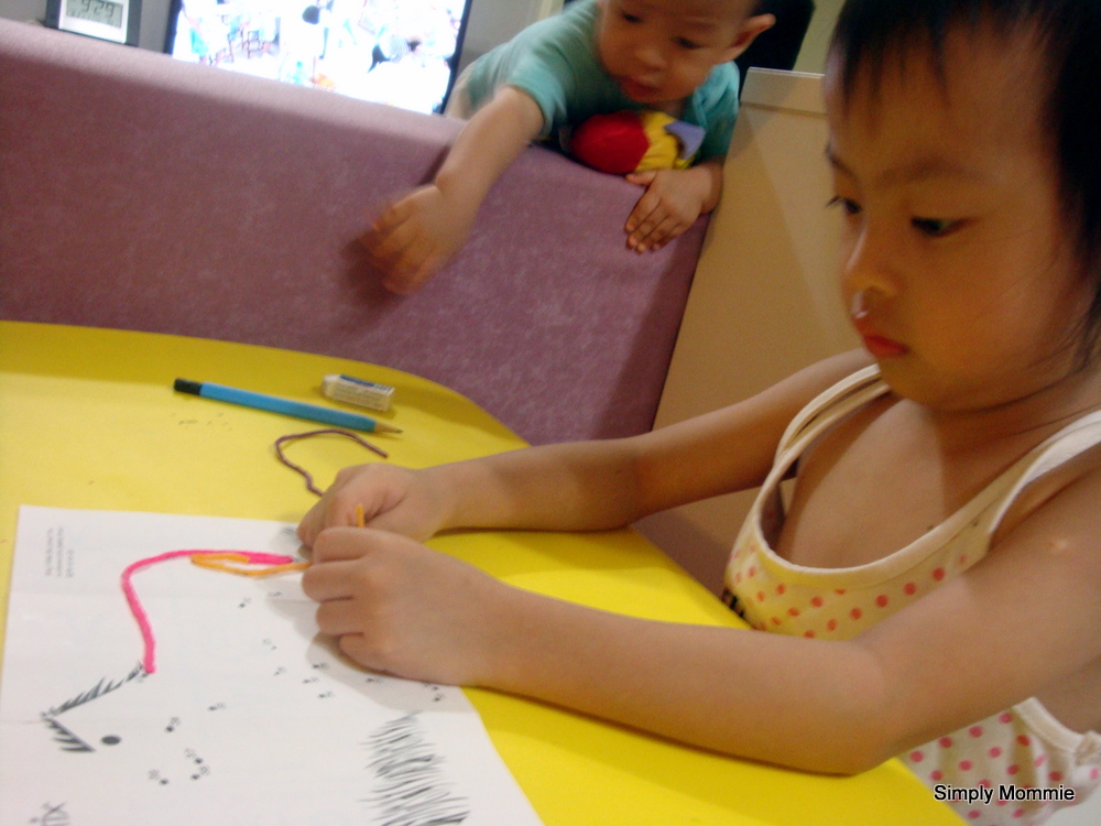 On another occasion, I took out this dot-to-dot activity book she has for her to play with her stix: