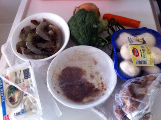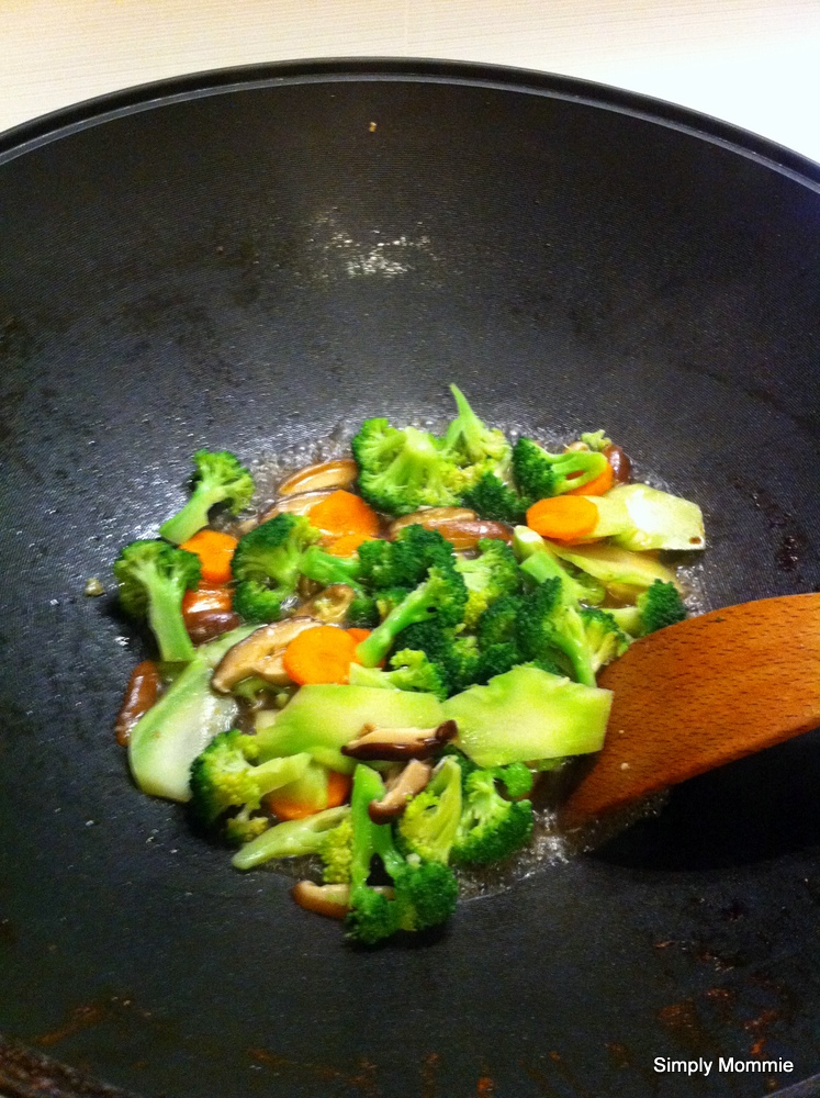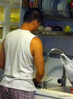 Boy stirs before we get to touch our food. Hubby goes to pacify him while I clean up the stove, clear the dishes used for food prep and the wok