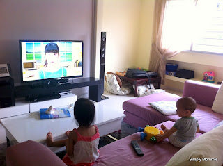Girl wakes and they both get to watch some TV while eating their brunch/brekkie