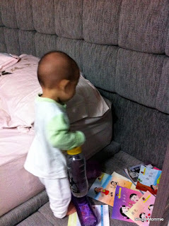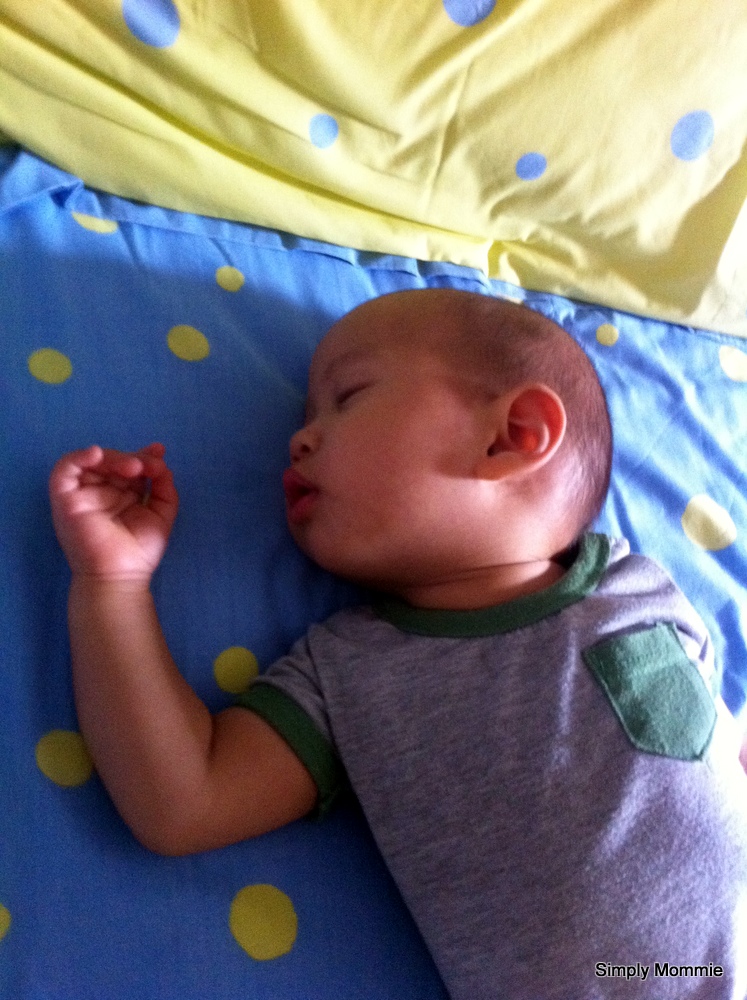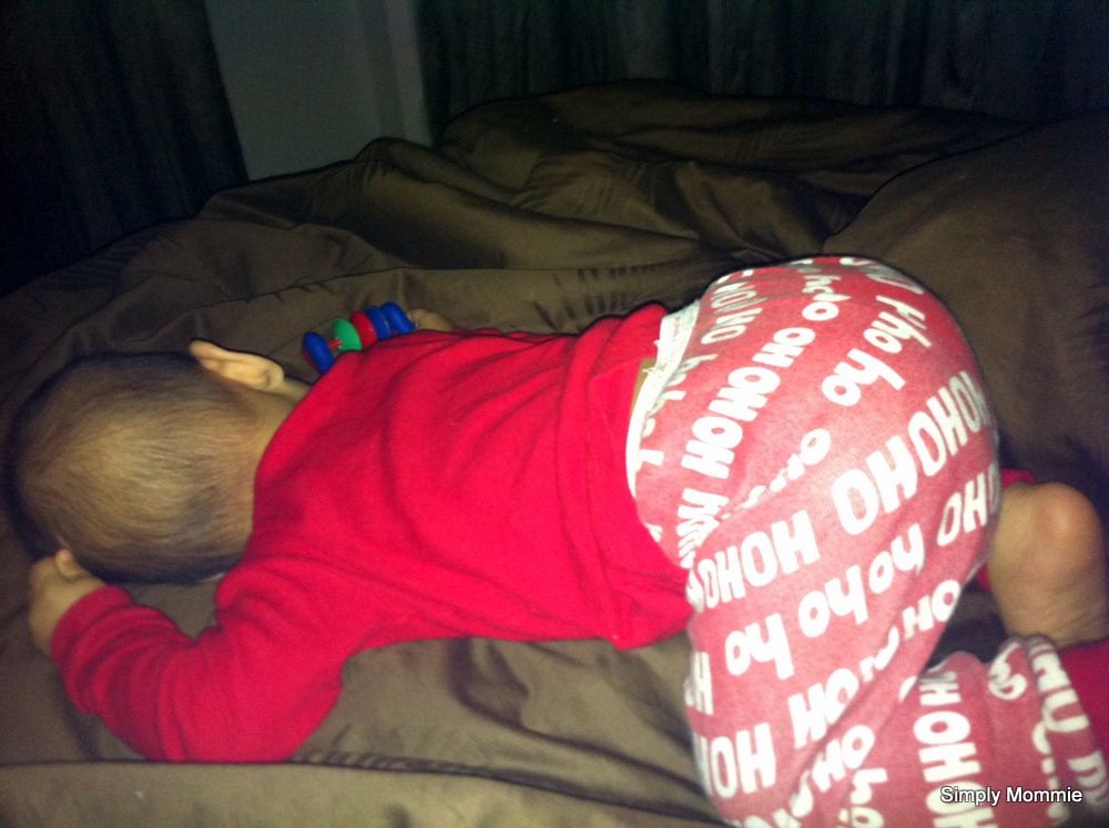 And when he finally finishes, it’s time to see that little cute bum and then it’s milk time! Waiting for me to lie down next to him for his feed:
