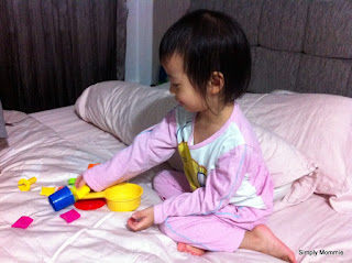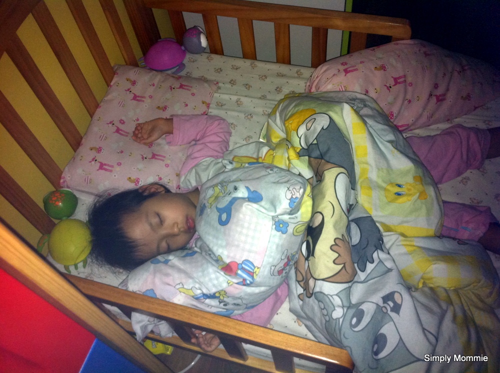 Girl comes home, bathes and snacks then she gets free play for awhile before it’s story time and off to la-la land. I send her to bed and close the door and *hope* she sleeps. Most days I walk in and find her still playing in my bed but after a few stern warnings, she drifts off into deep sleep.