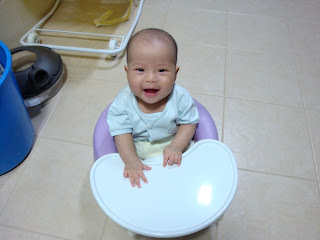 This range of cereals is suitable for babies 6 months and older and I’d really recommend the Healthy Times cereal as it is not only tasty and organic, it has no added sugars (perfect for a young baby). Of this range, Alicia liked the oatmeal best and indeed I’d say that she has good taste as the oatmeal cereal smelt the most fragrant! Well, it’s a pity that we didn’t take any pictures of her when we fed her her first semi-solid meal (but I think we did take a video if I’m not wrong) but here’s a picture of her in her bumbo seat for the first time after we brought it back from Takashimaya: