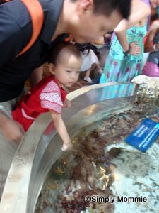 We decided that it was time to introduce Alicia to the cable car and just pop by the Underwater world at Sentosa as part of our short expedition on 13 Nov. We haven’t brought her to the Underwater world since our staycation at Sentosa and she didn’t quite enjoy it then because she was ill so we hoped she would enjoy it this time round – and she did… π She was quite hooked on the touch pools, especially the one with huge stingrays. π
